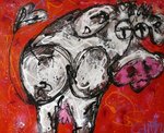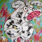 2011een kkleurrijk geheel , bonye koe door ,veel verf gebruik in de achtergrond . het geheel heeft een vrolijke uitstraling je wordt er blij van veel verfgebruik glans afgelakt
