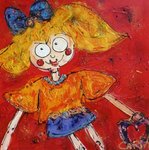 2011schilderij behoort bij een 2 luik blij jongen en blij meisje beide veel verfgebruik glans afgelakt